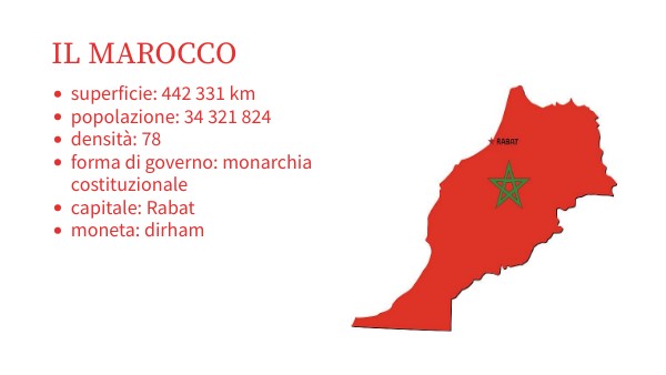 Il marocco,ufficialmente Regno Del Marocco,è uno stato dell'Africa settentrionale situato all'estremità piu occidente della regione araba Il marocco confina: nord: Mar Mediterraneo est: Algeria Sud: Sahara Occidentale Ovest: Oceano Atlantico