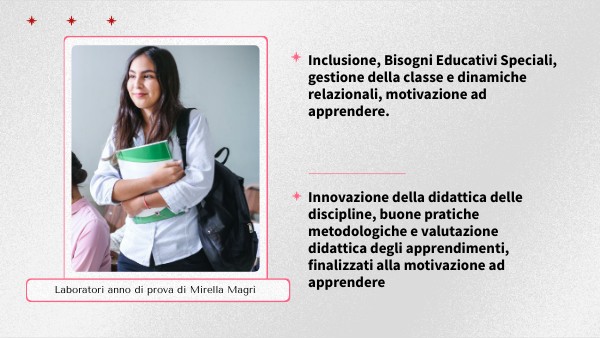 Inclusione, Bisogni Educativi Speciali, gestione della classe e dinamiche relazionali, motivazione ad apprendere.