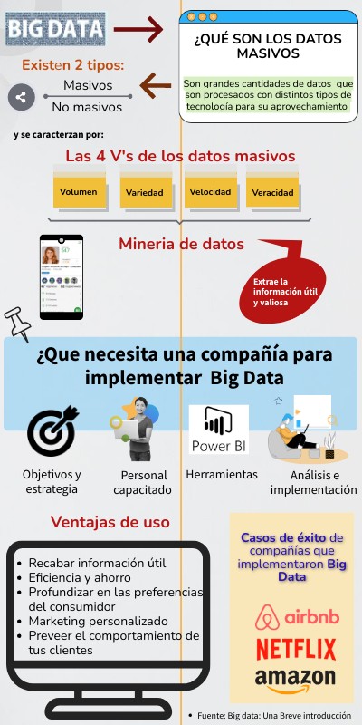 Son grandes cantidades de datos que son procesados con distintos tipos de tecnología para su aprovechamiento