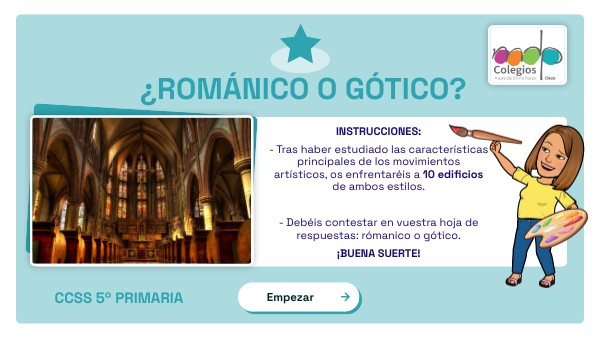 INSTRUCCIONES: - Tras haber estudiado las características principales de los movimientos artísticos, os enfrentaréis a 10 edificios de ambos estilos. - Debéis contestar en vuestra hoja de respuestas: rómanico o gótico. ¡BUENA SUERTE!