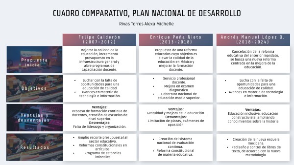 CUADRO COMPARATIVO, PLAN NACIONAL DE DESARROLLO