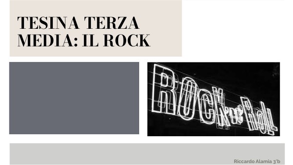 Come argomento principale per la mia tesina di terza media ho deciso di trattare la musica rock. Io sono molto appassionato di questo genere musicale e mi sembrava un’ottima scelta portarlo come argomento per la mia tesina dato che lo abbiamo affrontato durante il corso di quest’anno scolastico.