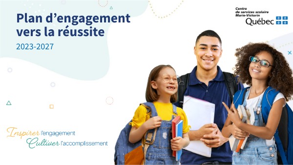 Les membres du conseil d’administration ont approuvé le plan d’engagement vers la réussite, présenté par les membres du CERÉ, lors de la séance publique du 23 mai 2023.Le plan d’engagement vers la réussite (PEVR) est un outil de planification nous permettant, de façon transparente, de faire connaître à toute la population les engagements du centre de services scolaire dans le but d’assurer la réussite éducative de tous les élèves, jeunes et adultes, et ce, pour une période donnée. La démarche d’élaboration du PEVR a été pilotée par le Comité d’engagement pour la réussite des élèves (CERÉ), composé de 18 membres, qui avaient notamment pour fonctions d’élaborer et de proposer au CSS Marie-Victorin un PEVR. Le CERÉ a débuté ses travaux en 2021 par l’élaboration du contexte de l’organisation. À partir de cette analyse, des consultations ont été menées, du printemps 2022 au printemps 2023, auprès de l’ensemble de notre communauté éducative. Cet exercice rigoureux nous a permis d’identifier la vision, les valeurs, les enjeux de l’organisation et de définir les orientations, les objectifs, les indicateurs et les cibles de notre prochain PEVR.