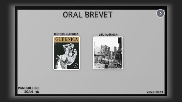 • Le titre de l’œuvre est Guernica • Elle appartient au domaine des arts visuels. • Elle a été réalisée par Pablo Picasso, artiste espagnol (1881-1973). • Cette œuvre date de 1937. • Ses dimensions sont 3,51 x 7,82 m • C’est un tableau. C’est une huile sur toile. • Elle est exposée pour la première fois à l’exposition universelle de Paris ( 1937). Aujourd’hui , elle est à Madrid, au Musée de la Reine Sofia.