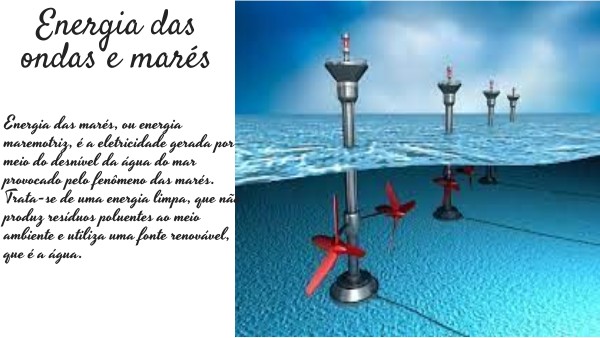 Energia das marés, ou energia maremotriz, é a eletricidade gerada por meio do desnível da água do mar provocado pelo fenômeno das marés. Trata-se de uma energia limpa, que não produz resíduos poluentes ao meio ambiente e utiliza uma fonte renovável, que é a água.