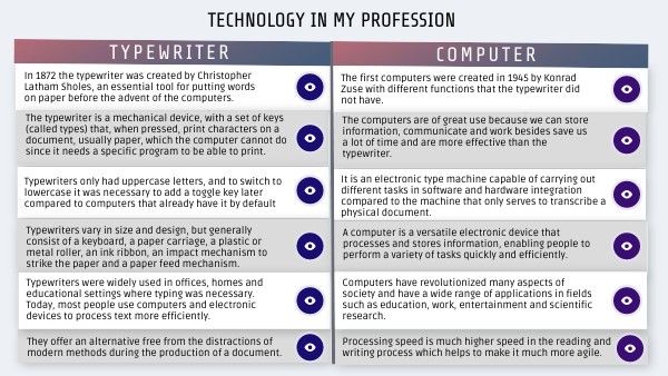The computers are of great use because we can store information, communicate and work besides save us a lot of time and are more effective than the typewriter.