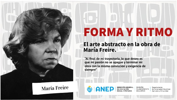 Las composiciones de María Freire, destacan por su dinamismo, que surge a partir de las formas. Estas, colocadas de manera ordenada en el espacio de trabajo, son las que generan el efecto de ritmo visual en sus pinturas. Así es como FORMA y RITMO, son los elementos centrales de la obra de esta gran artista uruguaya.