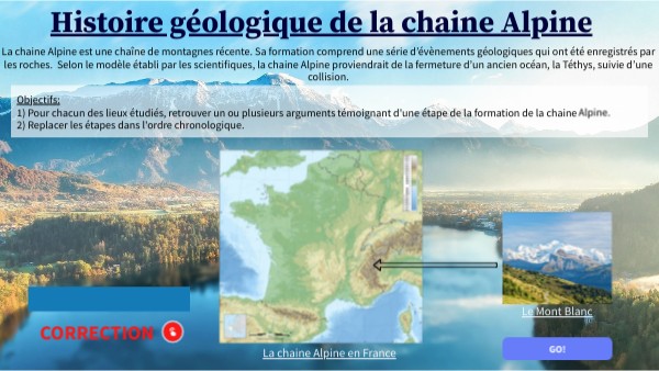 Objectifs:1) Pour chacun des lieux étudiés, retrouver un ou plusieurs arguments témoignant d'une étape de la formation de la chaine Alpine. 2) Replacer les étapes dans l'ordre chronologique.