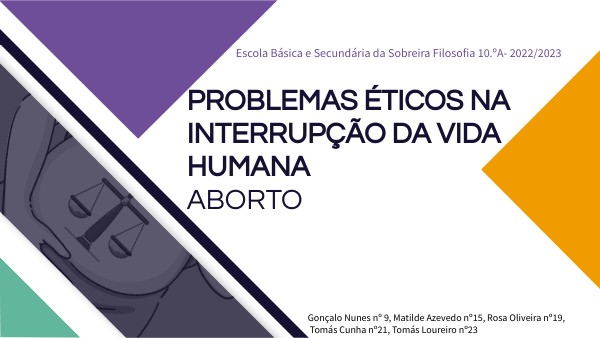 PROBLEMAS ÉTICOS NA INTERRUPÇÃO DA VIDA HUMANA ABORTO