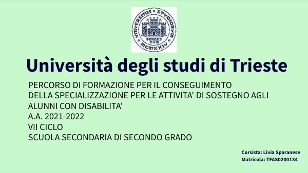 PERCORSO DI FORMAZIONE PER IL CONSEGUIMENTO DELLA SPECIALIZZAZIONE PER LE ATTIVITA' DI SOSTEGNO AGLI ALUNNI CON DISABILITA' A.A. 2021-2022 VII CICLO SCUOLA SECONDARIA DI SECONDO GRADO