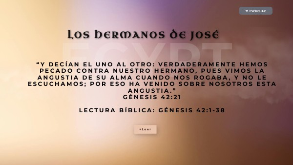 “Y decían el uno al otro: Verdaderamente hemos pecado contra nuestro hermano, pues vimos la angustia de su alma cuando nos rogaba, y no le escuchamos; por eso ha venido sobre nosotros esta angustia.” Génesis 42:21 Lectura Bíblica: Génesis 42:1-38
