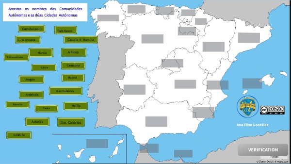 Arrastra os nombres das Comunidades Autónomas e as dúas Cidades Autónomas