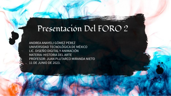 Andrea anayeli Gómez PérezUNIVERSIDAD TECNOLÓGICA DE MÉXICOLic. Diseño digital y animación Materia: Historia del Arte PROFESOR: Juan plutarco miranda nieto 11 DE JUNIO DE 2023.