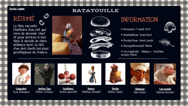 Le film raconte l'histoire d'un rat qui rêve de devenir chef et pour arriver à ses fins, il décide de faire alliance avec le fils d'un des chefs les plus prestigieux de France.