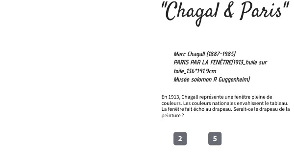 En 1913, Chagall représente une fenêtre pleine de couleurs. Les couleurs nationales envahissent le tableau. La fenêtre fait écho au drapeau. Serait-ce le drapeau de la peinture ?