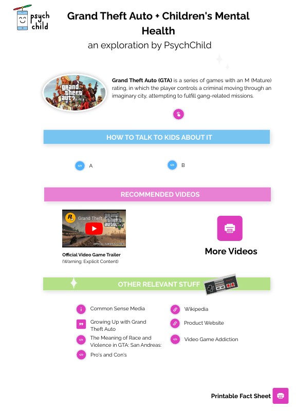 Grand Theft Auto (GTA) is a series of games with an M (Mature) rating, in which the player controls a criminal moving through an imaginary city, attempting to fulfill gang-related missions.