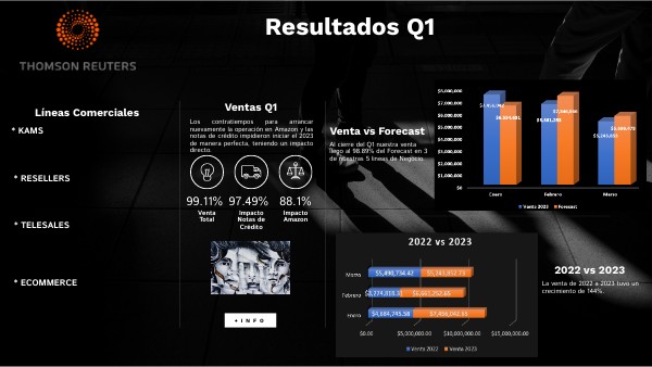 Al cierre del Q1 nuestra venta llego al 98.89% del Forecast en 3 de nuestras 5 lineas de Negocio.