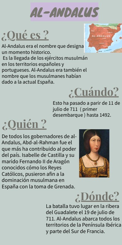 Al-Andalus era el nombre que designa un momento historico. Es la llegada de los ejércitos musulmán en los territorios españoles y portugueses. Al-Andalus era también el nombre que los musulmanes habían dado a la actual España.