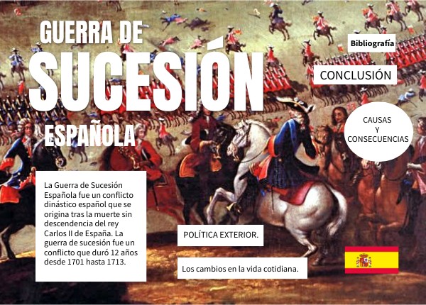 La Guerra de Sucesión Española fue un conflicto dinástico español que se origina tras la muerte sin descendencia del rey Carlos II de España. La guerra de sucesión fue un conflicto que duró 12 años desde 1701 hasta 1713.