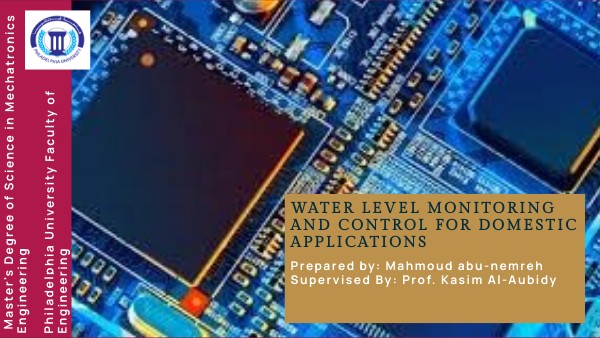 The project aims to develop a water level monitoring and control system specifically designed for domestic applications. The system utilizes an Arduino Uno microcontroller, an ultrasonic sensor, an LCD screen, and a pump equipped with a relay.