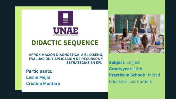 Subject: EnglishGrade/year: 10th Practicum School: Unidad Educativa Luis Cordero