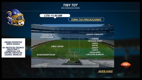 Costo taquilla $30 x persona jugadores y coaches no pagan