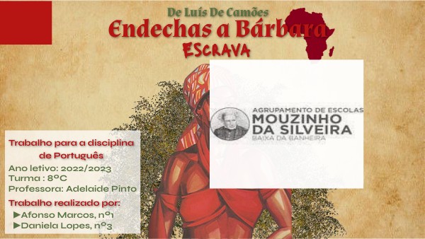 1 ▶ Linhas 1 e 2- Através de um trocadilho entre o nome “cativa” e a forma verbal do verbo cativar no Presente do Indicativo, “cativo”, o poeta explica que aquela escrava mantém-no preso a ela, afetivamente, e acrescenta que vive por ela embora ela não o deseje.