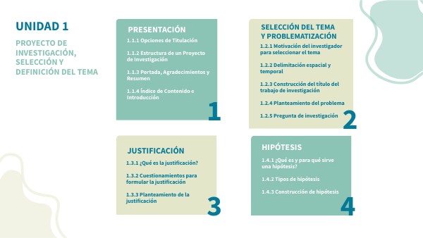1.1.1 Opciones de Titulación 1.1.2 Estructura de un Proyecto de Investigación1.1.3 Portada, Agradecimientos y Resumen1.1.4 Índice de Contenido e Introducción