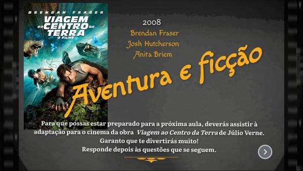 Para que possas estar preparado para a próxima aula, deverás assistir à adaptação para o cinema da obra Viagem ao Centro da Terra de Júlio Verne.Garanto que te divertirás muito! Responde depois às questões que se seguem.