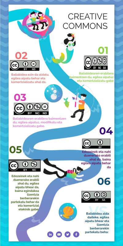 Edozeinek eta nahi duenerako erabili ahal du, egilea aipatu bhear da, baina egindakoa lizentzia berberarekin partekatu behar da eta komertzial etekinik gabe.