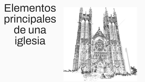 Torre: Indica la presencia de dios en ese lugar. Atrio:es un patio porticado situado a sus pies y que sirve de acceso. Solía tener una fuente y soportales. El acceso era libre a cualquiera hasta el atrio, quedando el interior del templo reservado para los fieles. Nave central: Una nave es la parte central de una iglesia católica tradicional, lo que corresponde a aisle en inglés. Una iglesia grande puede tener varias naves aparte de la nave central. Pilares cruciformes: la forma en cruz de su base determina su desarrollo vertical. En todo su recorrido suele llevar adheridas al núcleo central semicolumnas o pilastras, que en algunos casos pueden desdibujar su traza cruciforme.