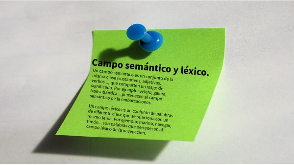 Un campo semántico es un conjunto de la misma clase (sustantivos, adjetivos, verbos...) que comparten un rasgo de significado. Por ejemplo: velero, galera, transatlántica... pertenecen al campo semántico de la embarcaciones. Un campo léxico es un conjunto de palabras de diferente clase que se relaciona con un mismo tema. Por ejemplo: marino, navegar, timón... son palabras que pertenecen al campo léxico de la navegación.