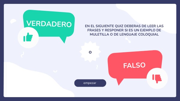 EN EL SIGUIENTE QUIZ DEBERAS DE LEER LAS FRASES Y RESPONER SI ES UN EJEMPLO DE MULETILLA O DE LENGUAJE COLOQUIAL