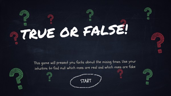 This game will present you facts about the mining town. Use your intuition to find out which ones are real and which ones are fake
