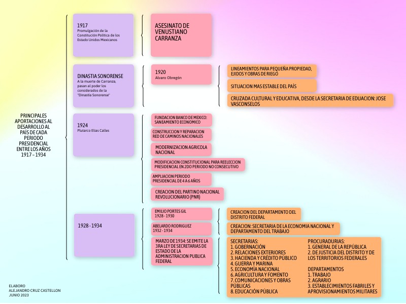 principales aportaciones al desarrollo al país de cada periodo presidencial entre los años 1917 – 1934