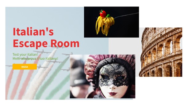 You are travelling now around my wonderful country. I am sure you already have planty of informations about it and you already like it! What do you like more? Let me guess.. food ;) Ok, you are now entering my escape room, at the end you will be sure ready for your first italian trip. Let's test together your italian!