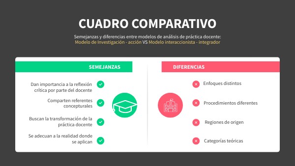 Semejanzas y diferencias entre modelos de análisis de práctica docente: Modelo de Investigación - acción VS Modelo interaccionista - integrador