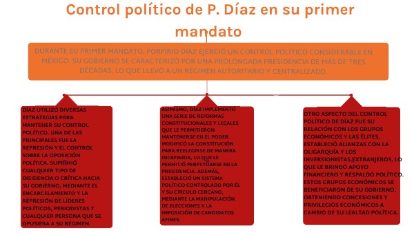 Durante su primer mandato, Porfirio Díaz ejerció un control político considerable en México. Su gobierno se caracterizó por una prolongada presidencia de más de tres décadas, lo que llevó a un régimen autoritario y centralizado.