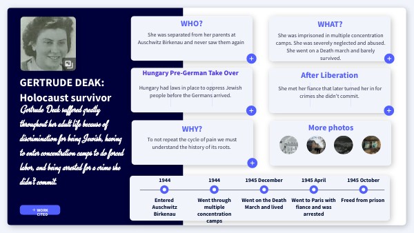 Gertrude Deak suffered greatly throughout her adult life because of discrimination for being Jewish, having to enter concentration camps to do forced labor, and being arrested for a crime she didn't commit.
