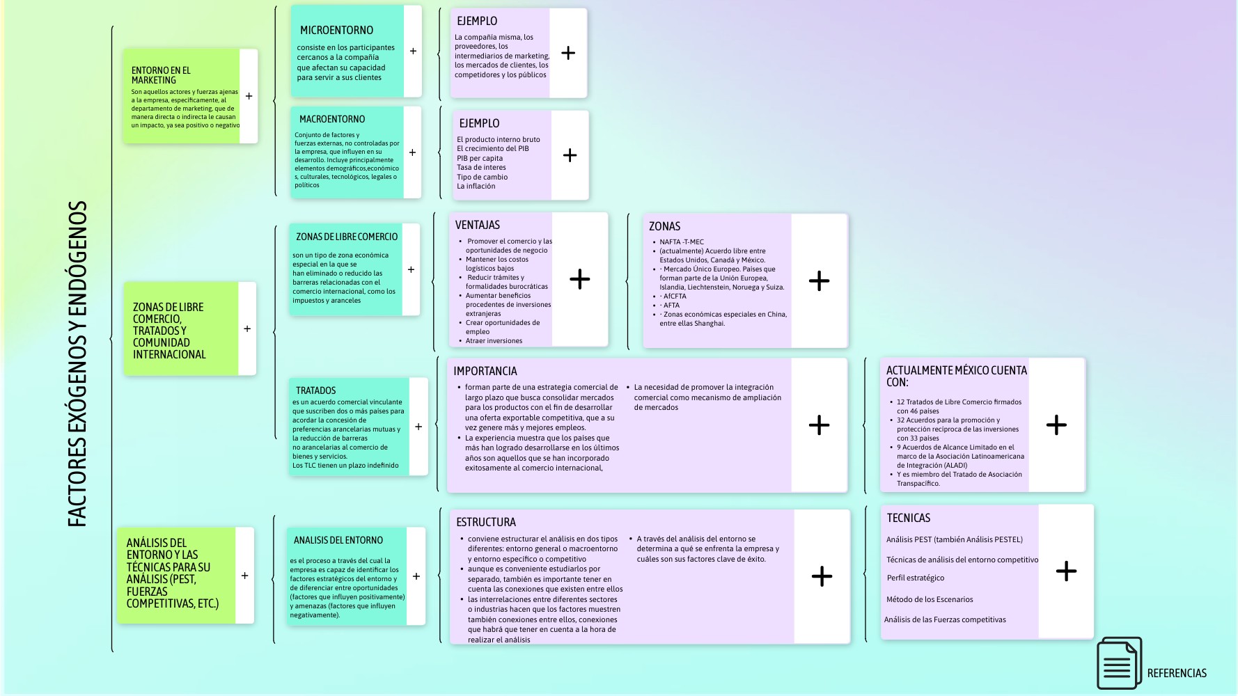 Conjunto de factores y fuerzas externas, no controladas por la empresa, que influyen en su desarrollo. Incluye principalmente elementos demográficos,económicos, culturales, tecnológicos, legales o políticos