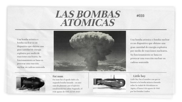 Las bombas atómicas son armas de destrucción masiva creadas por los americanos para su uso contra japón durante la segunda guerra mundial