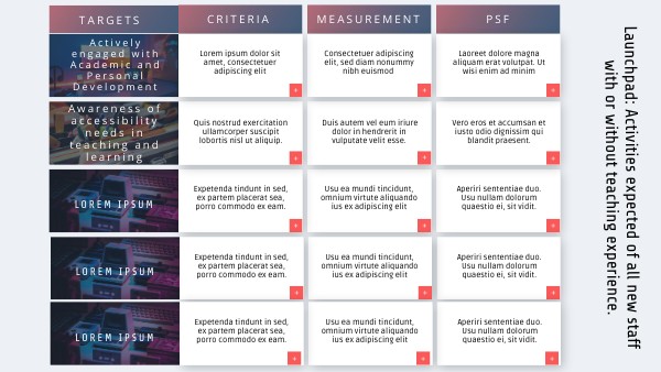 Launchpad: Activities expected of all new staff with or without teaching experience.