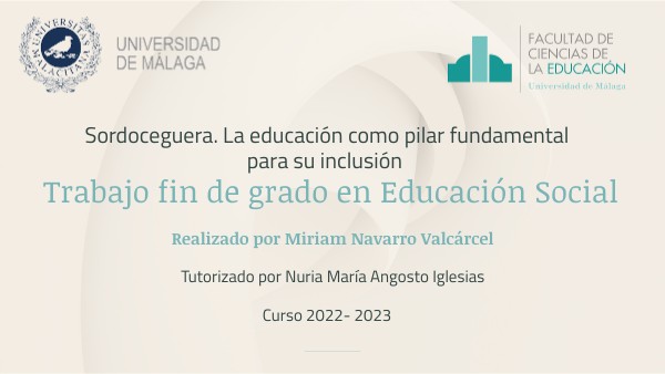 Las personas con discapacidad han sufrido a lo largo de la historia grandes periodos de exclusión y marginación por la ignorancia sobre lo que les pasaba. Dentro del grupo de la discapacidad, la sordoceguera es única debido a las características de la misma y a las consecuencias que tiene para las personas que la padecen además de ser una gran desconocida para la mayoría de la población. Por eso, en este trabajo pretendemos abordar como con una educación adecuada, las sociedades sehacen más conscientes del papel que pueden jugar para derribar las barreras a las que setienen que enfrentar las personas con discapacidad, en concreto, sordoceguera