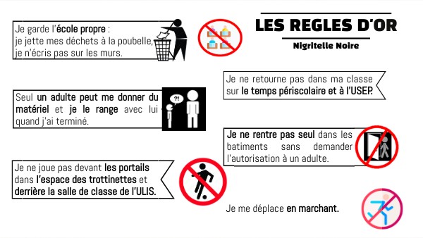 Je garde l’école propre : je jette mes déchets à la poubelle, je n’écris pas sur les murs.