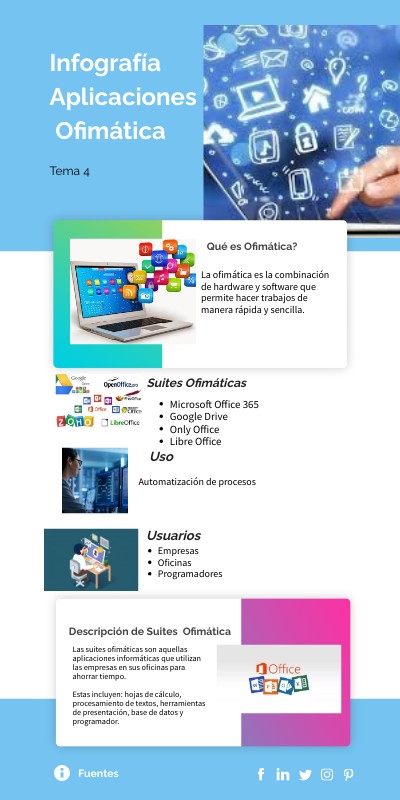 Las suites ofimáticas son aquellas aplicaciones informáticas que utilizan las empresas en sus oficinas para ahorrar tiempo. Estas incluyen: hojas de cálculo, procesamiento de textos, herramientas de presentación, base de datos y programador.