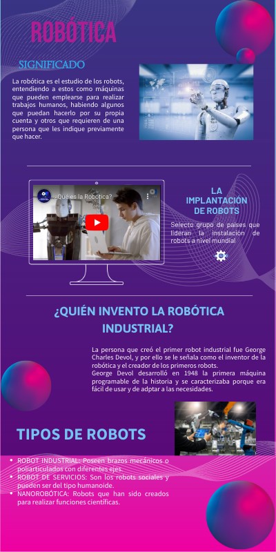 - NANOROBÓTICA: Robots que han sido creados para realizar funciones científicas.