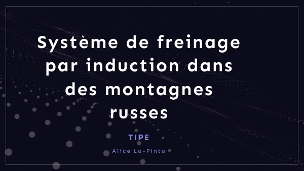 Le monde des parcs d’attractions est un commerce fleurissant, et le grand huit en est une des attractions phares. Se différenciant des jeux traditionnels, les montagnes russes s’appuient sur les effets physiques qu’engendrent l’accélération d'un wagon Afin d'assurer la sécurité des passagers lors de l'arrêt des wagons, à la fin du parcours, il est nécessaire de mettre en place un système de freinage sûr et efficace. Aujourd'hui, le système de freinage le plus répendu est le freinage par frictions, qui permet de ralentir le véhicule grâce aux frottements. Mais ce système s'use rapidement et la distance de freinage sans accoup brusque est assez importante. Ainsi, on peut rechercher d'autres systèmes de freinage qui répondraient davantage aux critères (coût, place, rendement et efficacité).