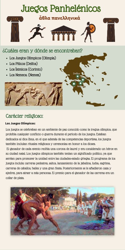 Las competiciones de los Juegos Nemeos incluían carreras a pie, lucha, lanzamiento de disco y pentatlón, entre otras disciplinas. Los atletas competían en honor a Zeus, el dios supremo del panteón griego, y buscaban obtener la victoria y el reconocimiento en su nombre.Los Juegos Nemeos también tenían una dimensión religiosa importante. Además de las competiciones atléticas, se llevaban a cabo rituales y sacrificios en honor a Zeus. Los vencedores de los juegos recibían coronas de apio, una planta sagrada asociada con el dios Zeus, como premio y reconocimiento por sus logros. Estos juegos eran un evento de gran importancia en la antigua Grecia, que no solo promovía la competencia atlética, sino que también proporcionaba una oportunidad para honrar y rendir culto a Zeus.
