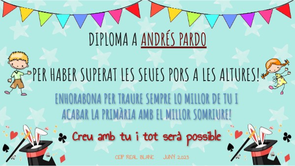 DIPLOMA A ANDRÉS PARDOPER HABER SUPERAT LES SEUES PORS A LES ALTURES!