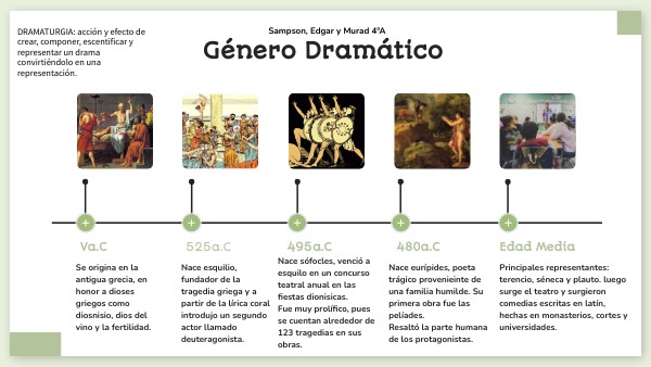 Nace esquilio, fundador de la tragedia griega y a partir de la lírica coral introdujo un segundo actor llamado deuteragonista.